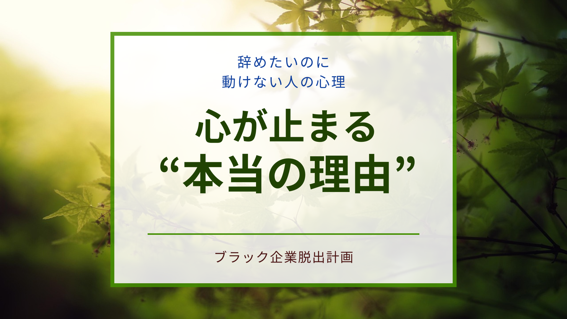 僕も同じでした。辞めたいのに動けず、毎日がしんどくて、何度も「なんで動けないんだろう…」と責め続けていました。