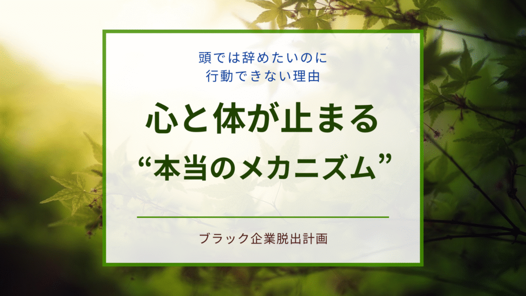 「辞めたい気持ちはあるのに体が動かない…」「なぜか行動に移せない…」 これは“甘え”でも“根性が足りない”からでもありません。 ブラック企業に長くいると、心と体の両方にブレーキがかかり、辞めるというシンプルな行動ですらできなくなることがあります... -