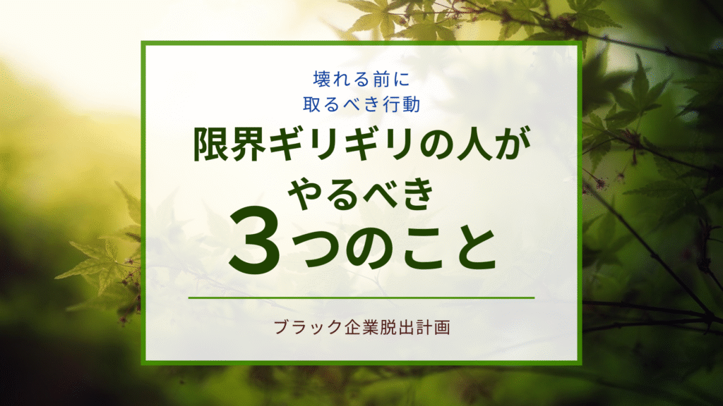 「もう限界かもしれない…。」 こう感じているとき、人は自分で思っている以上に心も体もすり減っています。 ブラック企業で働いている人は、限界サインに気づいていても我慢し続けてしまいがち。 でも、壊れてしまう前に“今すぐやるべき行動”があります。 ... -