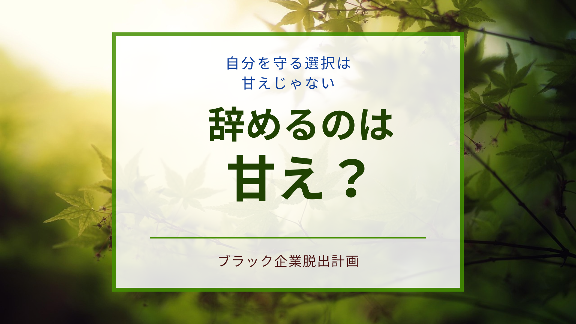 僕自身も「辞めるのは甘えだ」と思い込んで12年働き続けてしまった経験があります。